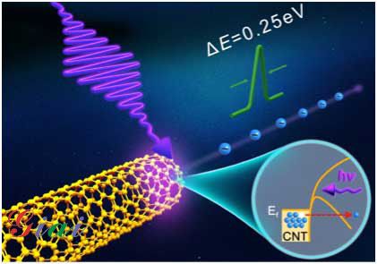 使用碳納米管(CNT),已經(jīng)實(shí)現(xiàn)了第一次能量傳播低至0.25eV。這種領(lǐng)先的性能已經(jīng)通過(guò)迄今為止最短光學(xué)波長(zhǎng)激發(fā)的光學(xué)子周期電子隧道實(shí)現(xiàn),只有通過(guò)團(tuán)隊(duì)在納米工程領(lǐng)域的獨(dú)特專長(zhǎng),特別是其獨(dú)特的CNT表面結(jié)構(gòu),才有可能實(shí)現(xiàn)這一領(lǐng)先的性能。這些納米表面提供了高場(chǎng)增強(qiáng)和高結(jié)構(gòu)穩(wěn)定性,作為顯微鏡和光譜學(xué)中的新一代超快電子源具有很大的潛力。